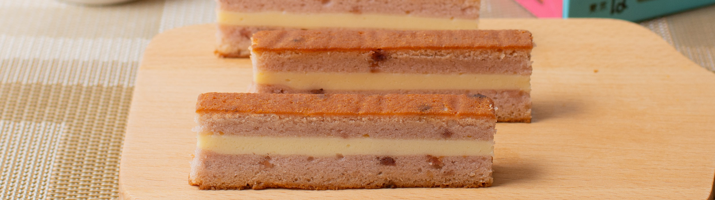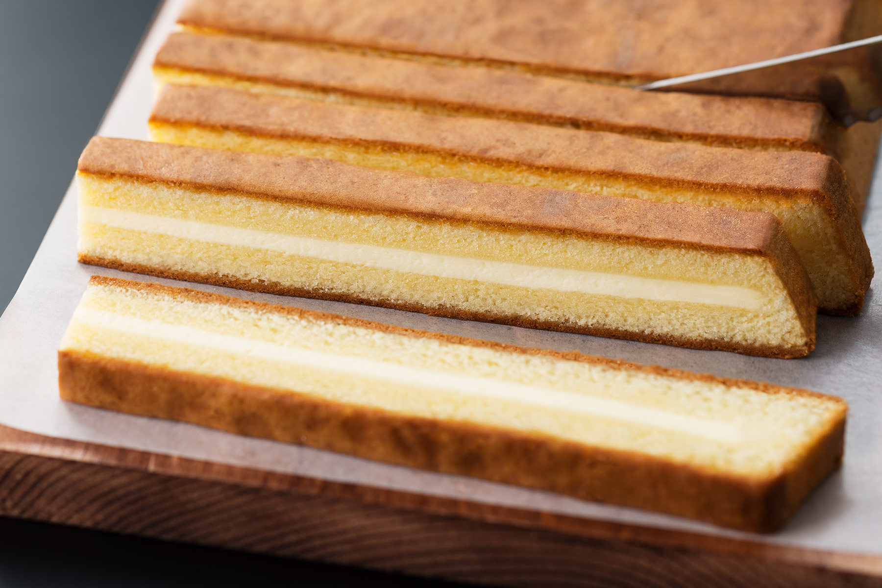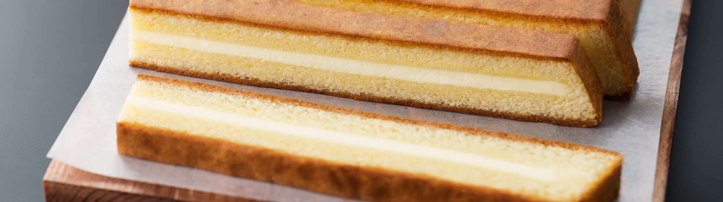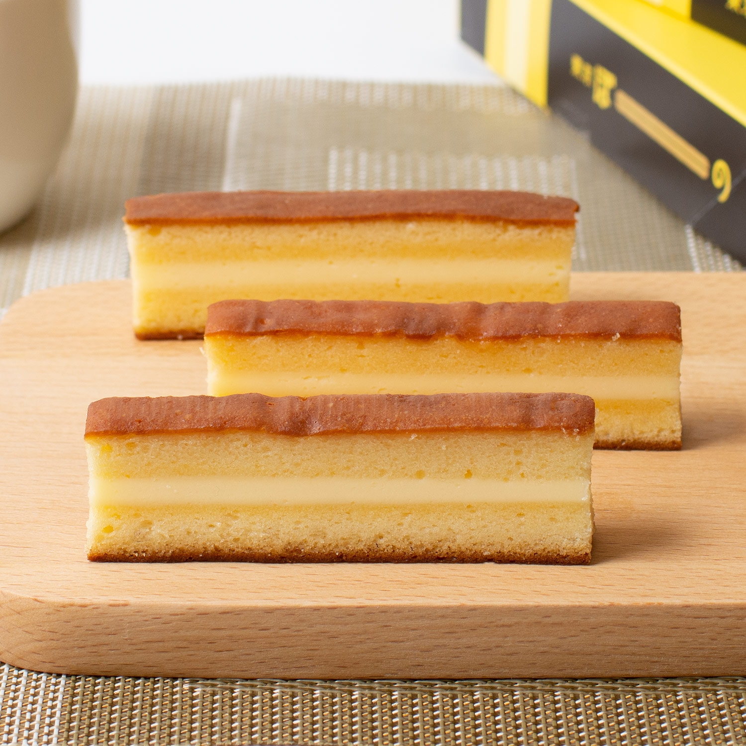 北海道、フランス、ニュージーランドの3種のチーズを絶妙にブレンドし、クリーミーなチーズケーキに仕上げ、しっとりとしたカステラで挟み、じっくりと焼きあげました。職人の高い技術と知識で、大人から子供まで10年以上愛される看板商品。